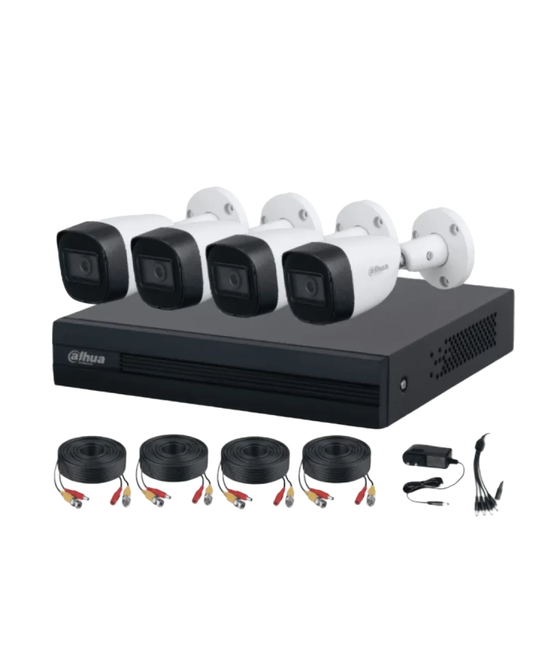 Este kit de videovigilancia incluye un DVR con compresión H.265+, codificación AI en todos los canales y soporte para múltiples formatos de video (HDCVI, AHD, TVI, CVBS, IP). La cámara bullet HDCVI de 1080P ofrece un lente fijo de 2.8mm, audio incorporado y visión nocturna con IR de hasta 30 metros, ideal para monitoreo día y noche en alta definición.