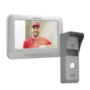 El kit de videoportero incluye el monitor DS-KH2220 con pantalla a color de 7″, resolución de 800×400 y monitoreo de cámaras, junto con el frente…